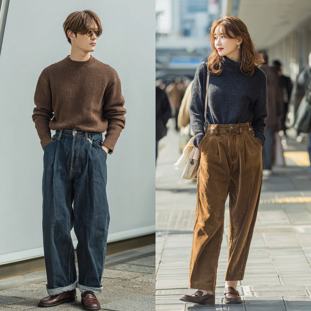 가을 데님 팬츠는 상의 선택에 따라 분위기가 완전히 달라집니다. 셔츠를 넣어 입으면 단정한 오피스 캐주얼, 니트를 입으면 포근한 주말룩, 자켓은 멋스럽고 프로페셔널한 느낌을 줍니다. 저는 특히 그레이 니트와 인디고진 조합을 좋아해요 — 차분하면서도 따뜻한 색감이 가을과 딱 맞습니다.