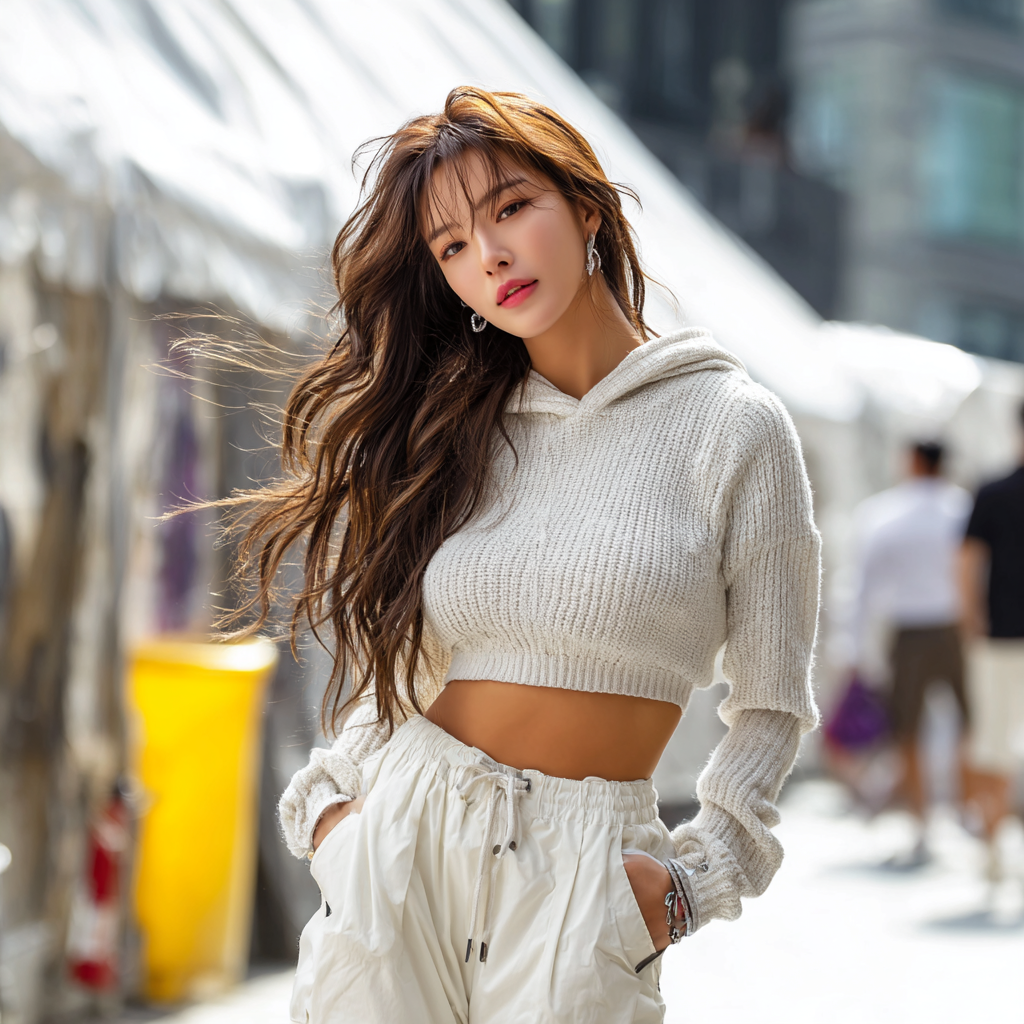 제가 가장 자주 입는 조합은 ‘크롭 후디 + 조거팬츠 + 화이트 스니커즈’. 간단하지만 하체 라인이 정리돼서 훨씬 비율이 좋아 보여요. 특히 허리선이 강조되면 키가 5cm는 커 보이는 착시가 생깁니다. 👖