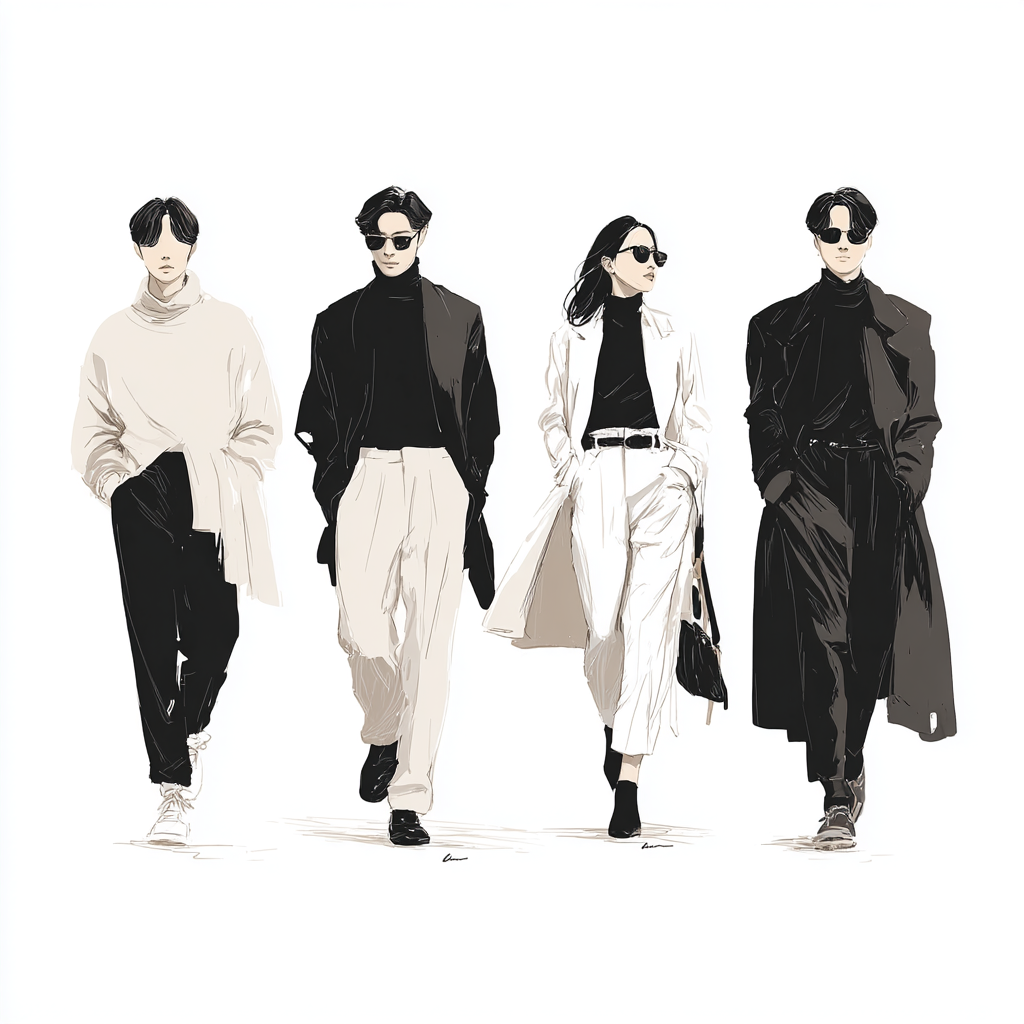 마지막 실수는 신발 선택이에요. 미니멀룩은 신발이 과하면 전체 룩이 무너지기 때문에, 기본 로퍼·블랙 첼시부츠·화이트 스니커즈 정도만 사용해도 충분합니다. 이 원칙을 지키면 전체적인 균형이 유지되면서 가장 고급스러운 무드가 나옵니다.