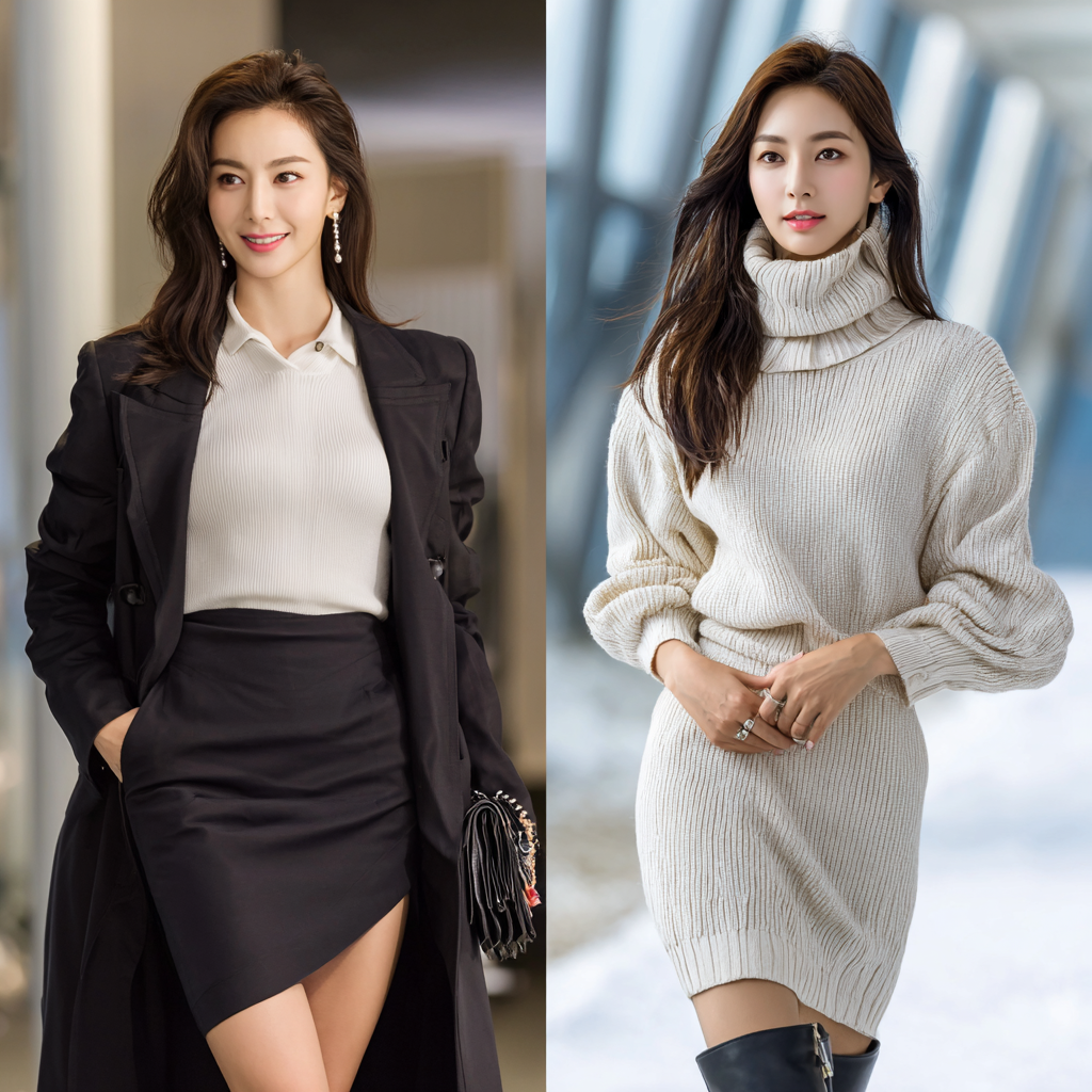 👕 두 번째 핵심: 상의는 니트, 셔츠, 코트와 톤온톤 조합으로 단정함 유지.