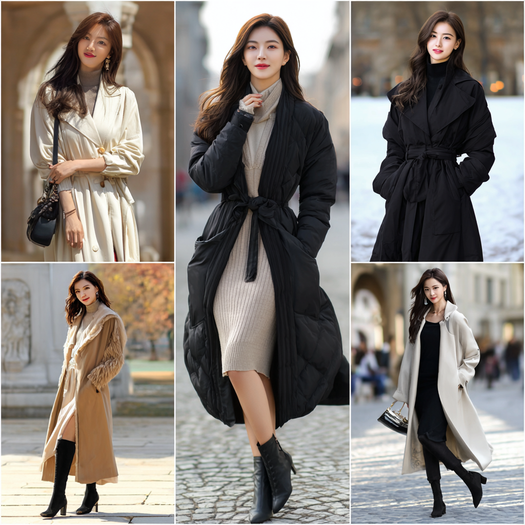 특히 틸그린이나 다크브라운 계열의 코트는 얼굴 톤을 밝게 만들어줘 세련된 인상을 줍니다. 저는 밝은 카멜 코트를 화이트 팬츠와 매치했더니 “훨씬 길어 보인다”는 말을 많이 들었어요. 🤍