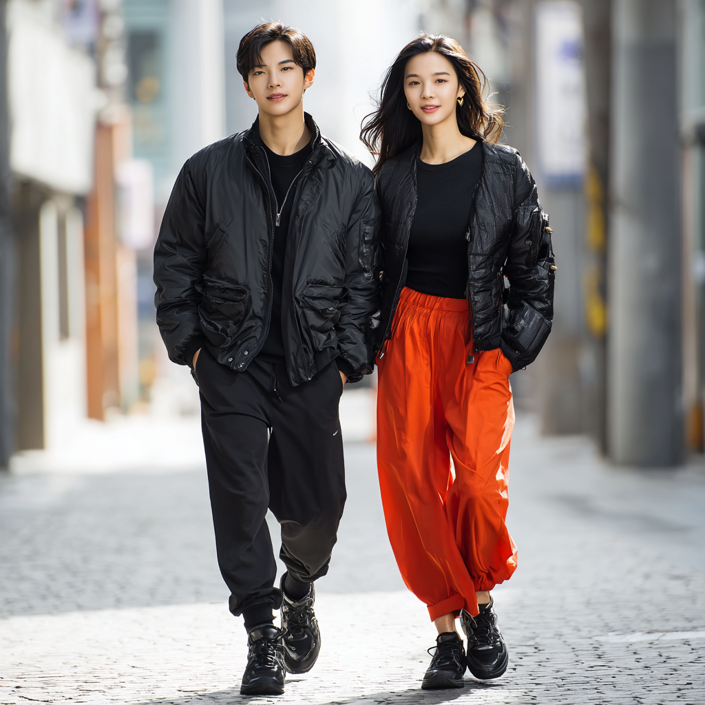 제가 자주 하는 스타일은 흰 셔츠 + 검정 조거팬츠 + 그린 스니커즈 조합이에요. 단순하지만 거리에서 눈에 띄어요. 사진 찍을 때도 실루엣이 깔끔하게 떨어져서 “분위기 미쳤다”는 말을 정말 자주 듣습니다. 😎