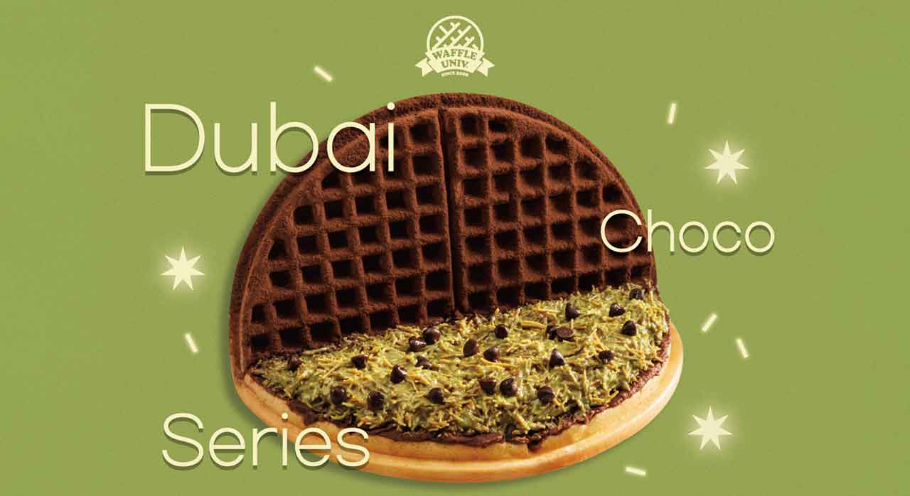 ‘두바이와플(Dubai Waffle)’은 와플대학이 선보인 새로운 시그니처 메뉴예요. 고급스러운 초콜릿과 피스타치오 스프레드를 조합해 두바이의 ‘럭셔리 디저트’ 감성을 담았다고 합니다. 실제 브랜드에서는 이를 ‘두바이초코학과’라는 이름으로 마케팅하며 프리미엄 와플 라인업의 상징처럼 자리 잡았어요.