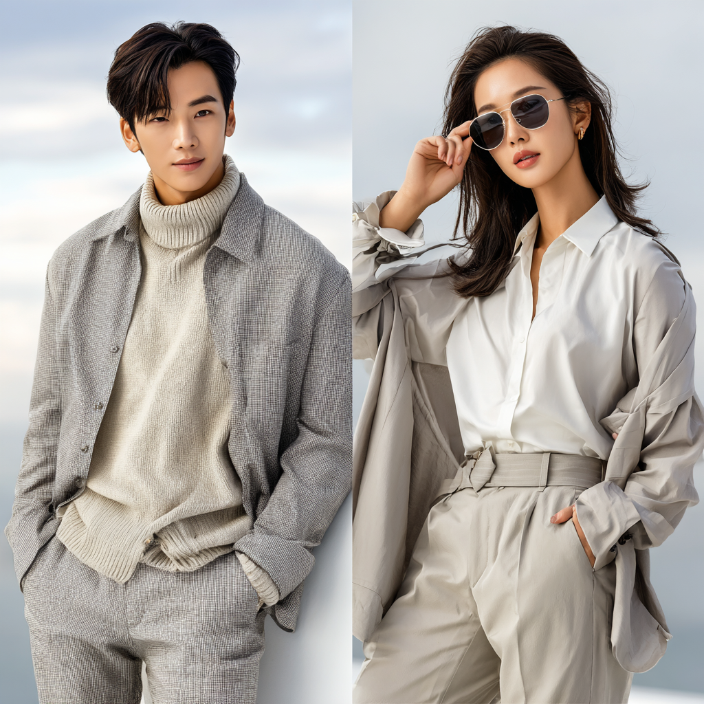 - 🧥 모노톤 조합: 그레이 니트 + 차콜 팬츠