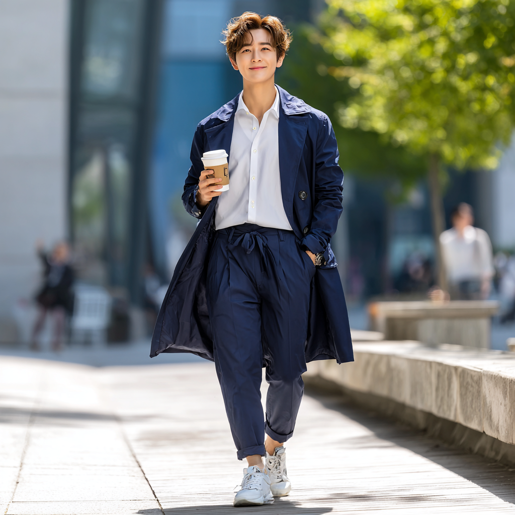 예를 들어 네이비 자켓 + 화이트 셔츠 + 베이지 팬츠는 단정하면서 따뜻한 인상을 줍니다. 여기에 포인트로 브라운 벨트나 실버 이어링을 더하면 밋밋함이 사라져요.