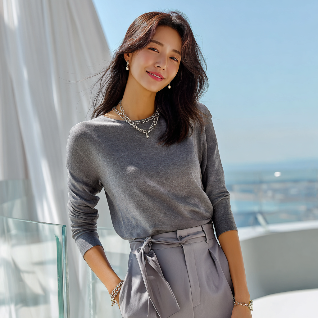 페미닌 팬츠는 ‘핏’과 ‘소재’가 80%입니다. 실루엣만 잘 맞으면 고급스러움이 자연스럽게 살아납니다.